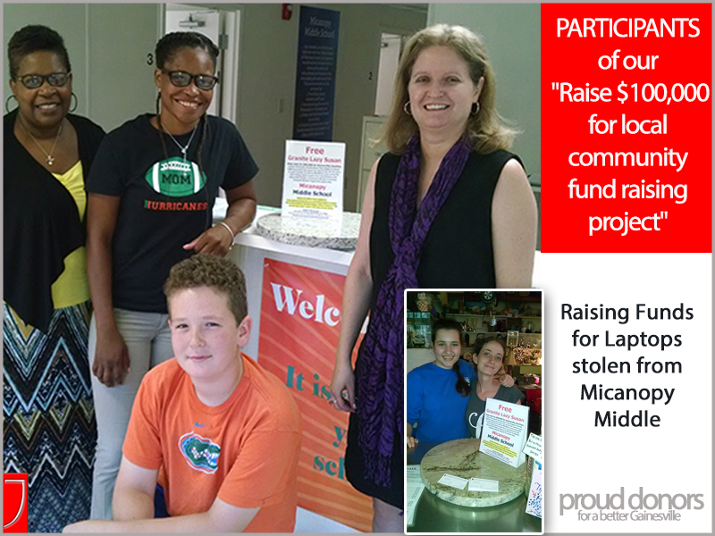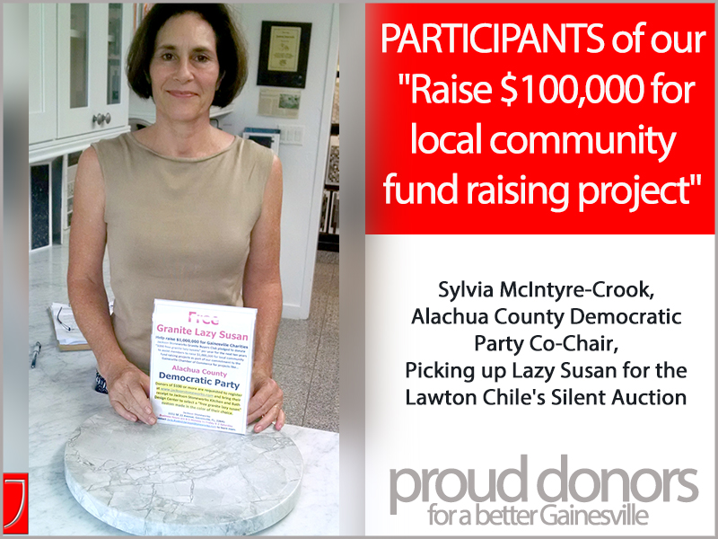 $100 or more to a local charity community fund raising project may bring their receipt to our factory, choose a stone and have a Free Granite Lazy Susan manufactured in the color of their choice.