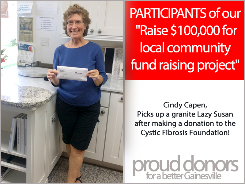 Get a Granite Lazy Susan of your choice when you donate $100 or more to a local Gainesville charity.