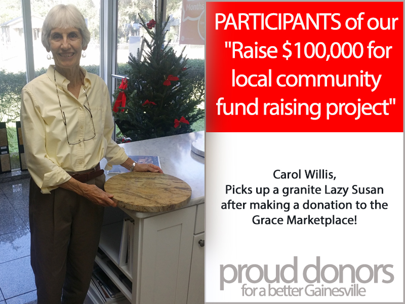 Get a Granite Lazy Susan of your choice when you donate $100 or more to a local Gainesville charity.